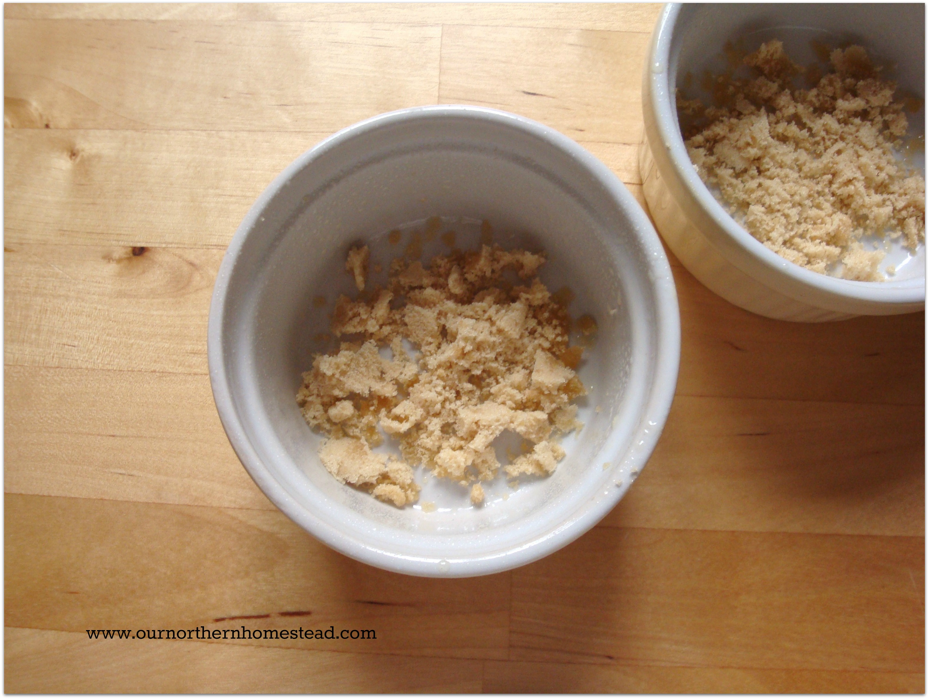 Combine chopped peaches with the cornstarch and mix well. Divide evenly among the ramekins.