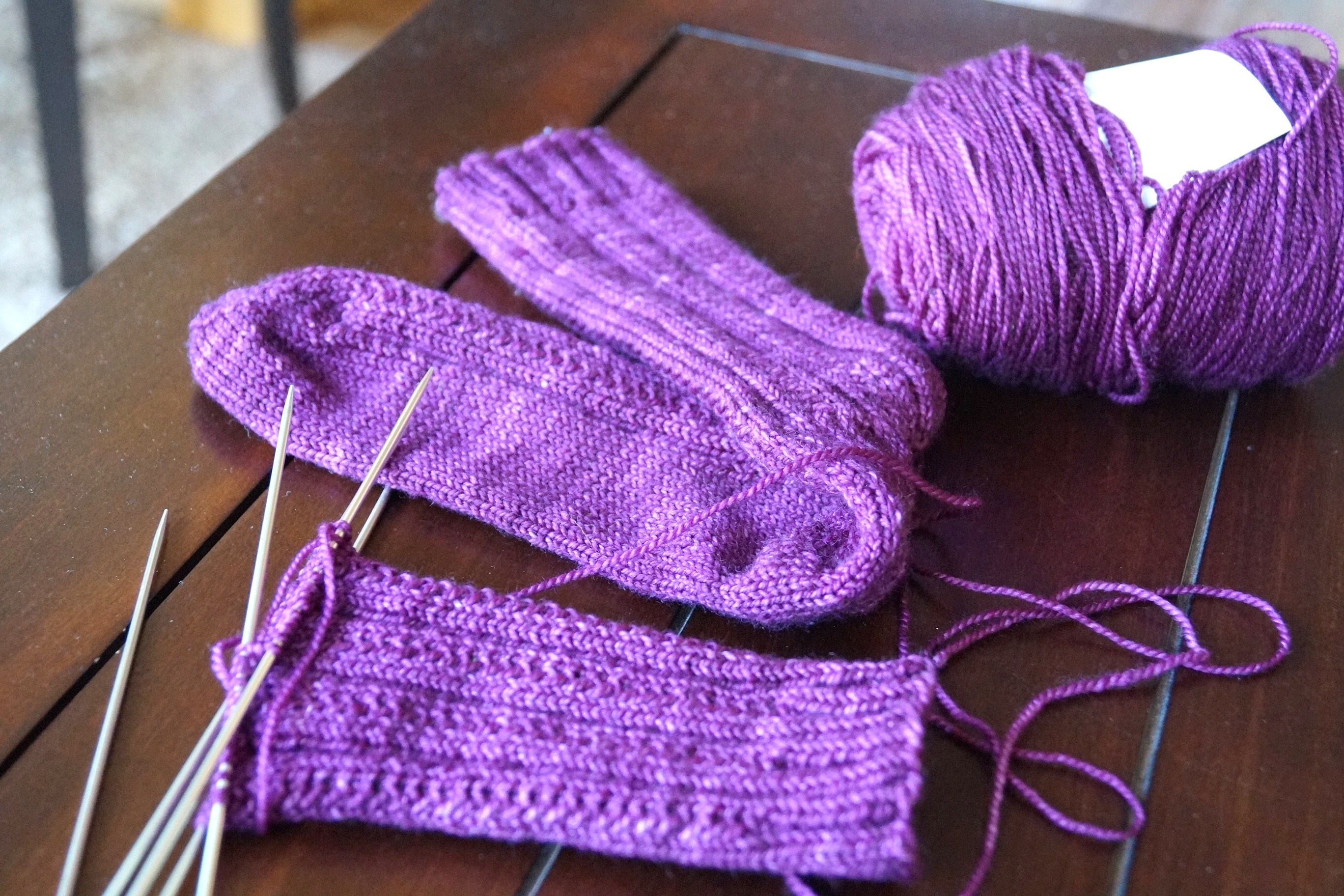 Now this is the most exciting part of this post ~ FIBER THRILLS! I have managed to squeeze some time out of my very busy days for knitting, spinning and weaving. I have completed about 4 pairs of socks in the last few months and currently have a gorgeous purple hued Madeline Tosh merino wool on the needles that hopefully will be done this week.